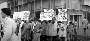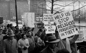 Photographed outside the United Nation building in New York City , March 27, 1959. Kalmyk people were the first to protest at United Nation, calling for a free Tibet.