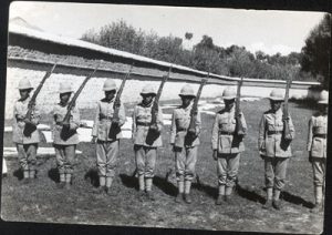 The Soldiers of the Dalai Lama‘s Guard at Norbu Lingka, Lhasa with modern uniforms and riffles.