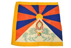 Tibetan National Flag, 1949 Original Tibetan National Flag given to Lowell Thomas by the Dalai Lama in Lhasa in 1949. Thomas brought this flag to the UnitedStates where it has remained ever since. The flag is machine and hand stitched, embroidered with colored thread.